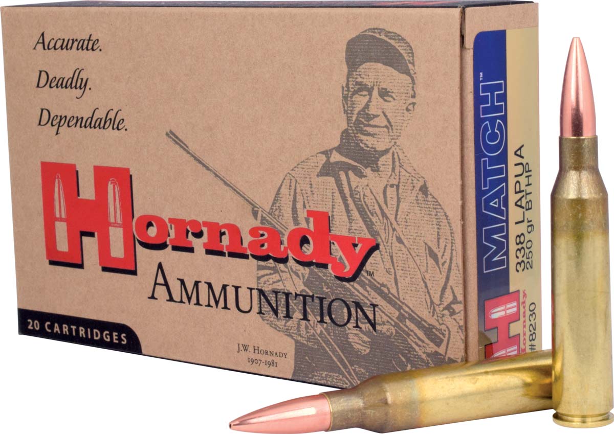The Heat Shield bullet tip defies the effects of aerodynamic heating and retains its. Hornady Match is non-corrosive new production ammunition in boxer primer and reloadable brass cases. The good news for those who can afford it is that Hornady now offer a range of 338 Lapua ammunition.
